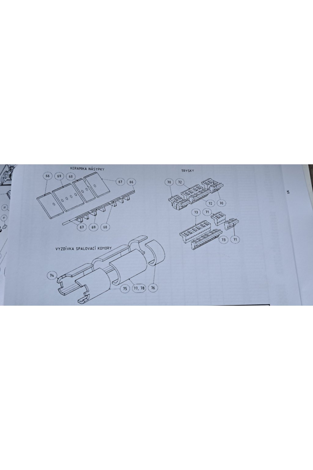 (vyzdívky spalovací komory + trysky + vyzdívky násypky)